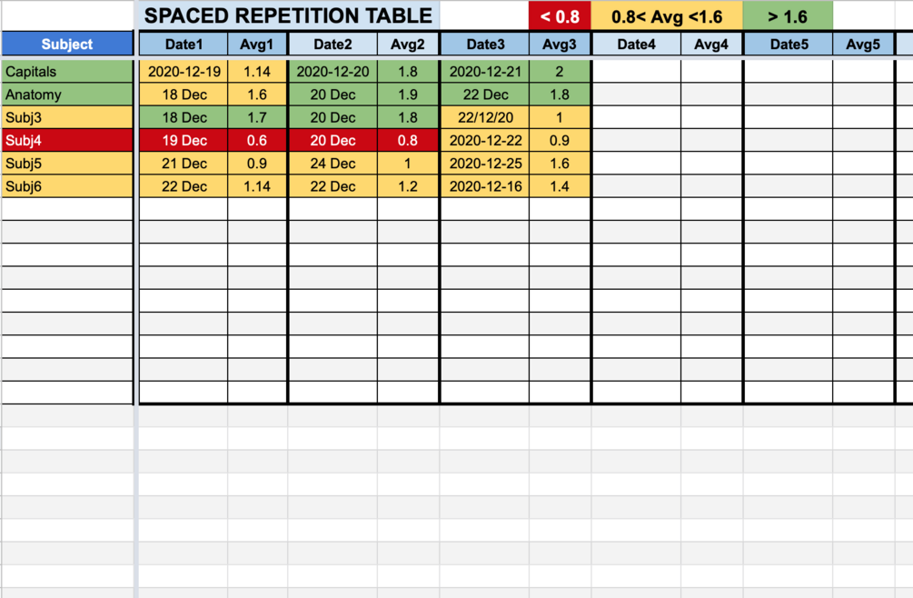- Colour Coded Tracking of your Progress (Spaced Repetition)